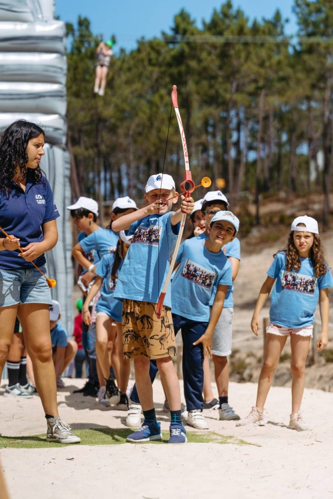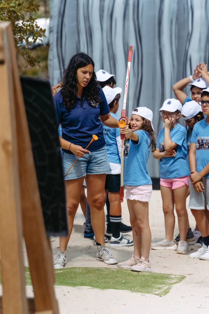 Esta atividade requer o uso de um arco e flechas, e consiste em acertar num alvo com diferentes pontuações, o que desafia os participantes a testar sua pontaria, postura e concentração.